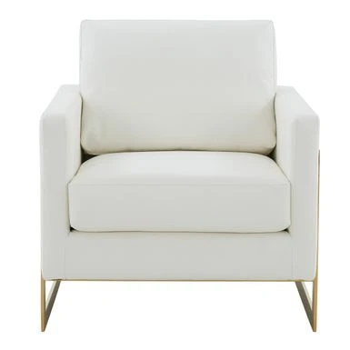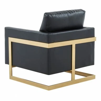 The Lincoln Collection features a classic style that elicits thoughts of modern elegance and grace. Add glamorous definition to your interior space with a Lincoln armchair, Designed with simple, modern lines and scaled for use anywhere in your home, the chair’s seating area is covered in an elegant Leather that is set off by the splendid gold metal legs. The chair is built with durability and supportive comfort in mind, from the sturdy hardwood solids in the frame to the stainless-steel legs to the high-density foam and fiber padding in the seat and back. The Accent Armchair brings a regal ambiance to this piece, making this a glamorous addition to your home.