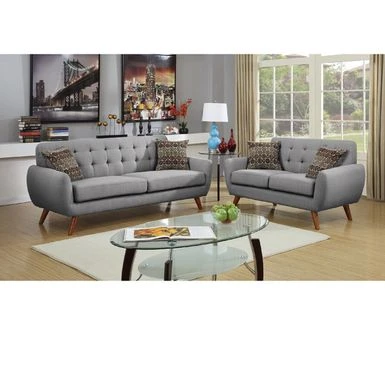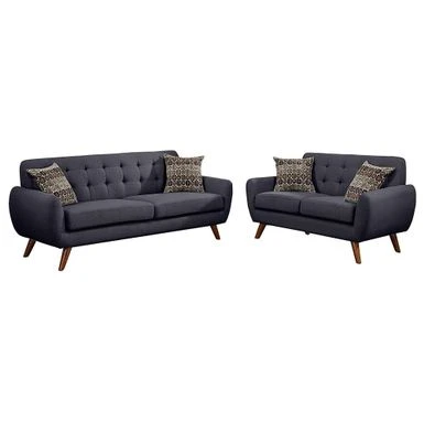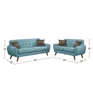 This sofa set features a bold designed with accent tufting on the low back support and plush seating.Besides, the sofa and loveseat with decorative peg-style leg supports will give you a retro styled feel. This sofa set features a bold designed with accent tufting on the low back support and plush seating.Besides, the sofa and loveseat with decorative peg-style leg supports will give you a retro styled feel. The thick cushions with two pillows that comes with this set make the whole sofa even more comfortable. The sofa set will be an ideal choice for any living room.