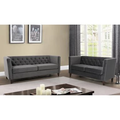Elevate your living room with the Lisette Velvet 2PCs Living Room Set Sofa & Loveseat. The clean-lined, classic design boasts tight square arms and wood tapered feet, while the crushed velvet upholstery adds a touch of glamour. With high-density foam and spring support, piped seat cushions, and a button-tufted backrest, this set is both comfortable and stylish.