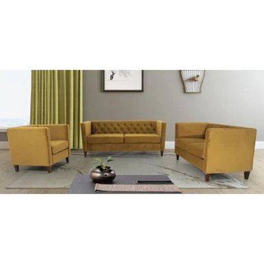 - Button-tufted backrest and piped seat cushions for a timeless appeal