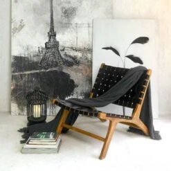 WAREHOUSE OF TIFFANY Brisot Square Weave Leather On Teak Wood Lounge Chair – Black