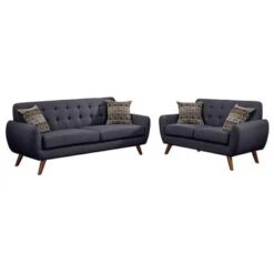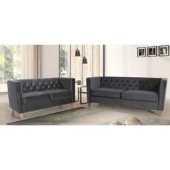 Lisette Velvet 2PCs Living Room Set Sofa & Loveseat – Yellow