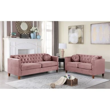 Elevate your living room with the regal and glamorous Lory velvet Kitts Classic Chesterfield Sofa. Its crushed velvet upholstery and exquisite details including piped seat cushions, matching bolster pillows, and a button-tufted backrest make it a timeless masterpiece. Crafted from a wood frame with high-density foam fill and spring support, this sofa boasts a clean-lined silhouette with tight square arms and wood tapered feet that exude sophistication.
