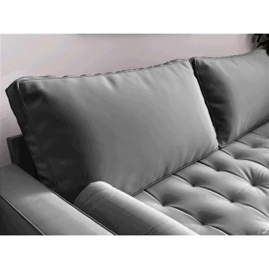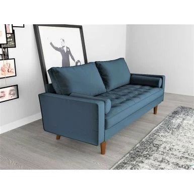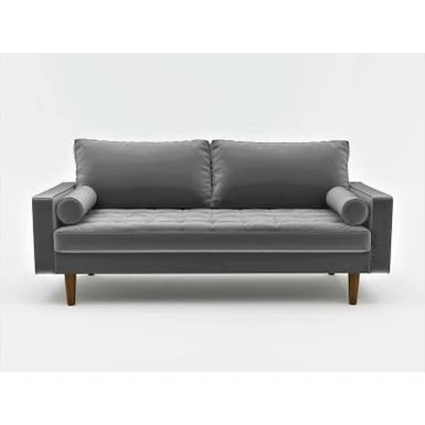 The classic design of the sofa,Mid-century style gives this wood frame Velvet Tufted sofa has a distinctive look that elevates your well-curated collection. The classic design of the sofa,Mid-century style gives this wood frame Velvet Tufted sofa has a distinctive look that elevates your well-curated collection. It is button tufted details add a refined touch to any space while its streamlined silhouette and square arms fuse together to make a modern look. It features the button tufted seat and back cushion and finished wood legs. Two bolster pillows are included.What’s Included?Toss Pillow IncludedFeaturesMid-century modern styleSquare armsVelvet TuftedProduct DetailsUpholstery Material: VelvetDesign: StandardAssembly Required: Yes