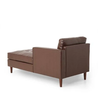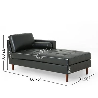 This delightful chaise provides a gorgeous, button-tufted design finished with waffle stitching in the seating. This pieces brings the perfect spot to stretch out in relaxation. Completed with a lovely rolled accent pillow, this refined chaise lounge transforms your interior space into a personal sanctuary.
