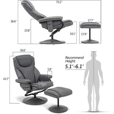 - Overall Dimension(without Ottoman):30.6″(W) x 55.9″(D) x 43.7″(H)