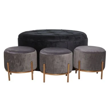 - This ottoman stool set are made of MDF body and carries a velet seat cushioned and metal legs