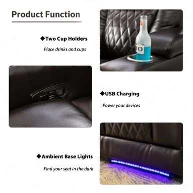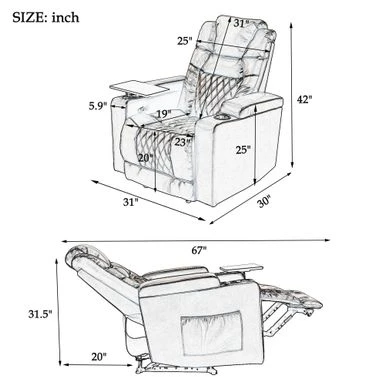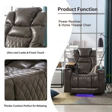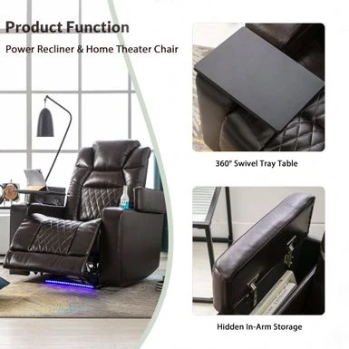 Introducing our latest electric recliner chair that is designed to provide you with the ultimate comfort and convenience. With a built-in USB charging port, you can easily charge your devices while relaxing. The 360 rotating tray table allows you to keep your snacks, books, and other essentials within reach without having to get up from the chair. The chair also features side arm storage and two cup holders, so you can keep your belongings organized and easily accessible. Sit back, relax, and enjoy the comfort and convenience of our electric recliner chair.