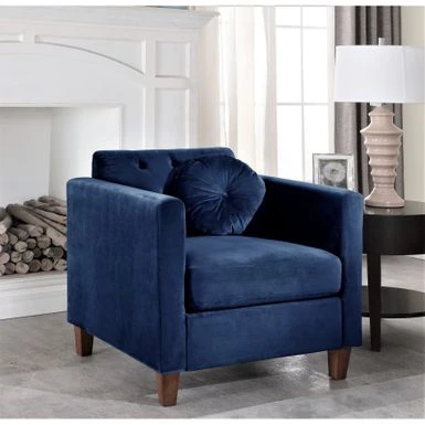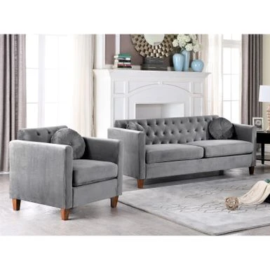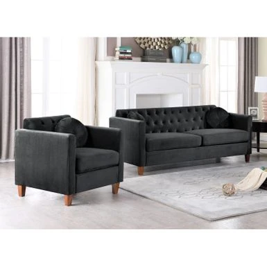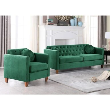Add a comfortable seating option to your home with this living room chair and sofa set. This set has a lovely design and is available in six different color options. It is built with a sturdy wooden frame and features clean-lined silhouette with tight square arms and wood tapered feet. Crushed velvet upholstery brings out this sofa’s glamorous side.