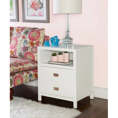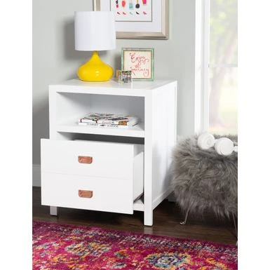 - Two drawers and one open shelf