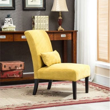 - Includes 1 upholstered armless accent chair with 1 matching kidney pillow