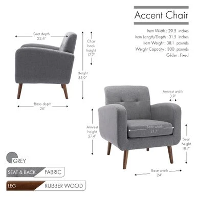 - [DIMENSIONS OF PORTHOS HOME SURI ACCENT CHAIR] (height) 33.9 x (width) 29.5 x (depth) 31.5 inches; (item weight) 38.1 lbs; (weight capacity) 300 lbs; simple assembly required