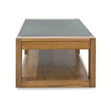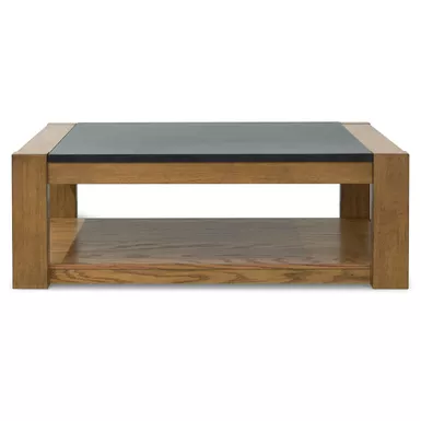 With a built-in spring lift top─ideal for casual dining and laptop use─this coffee table rises to the occasion in fine style. Clean lines and natural wood-tone legs make it endlessly versatile. The table’s faux stone melamine laminate top is durable and waterproof─a clever blend of form and function.