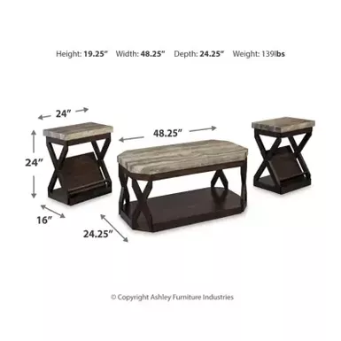 - Includes 1 coffee table and 2 end tables