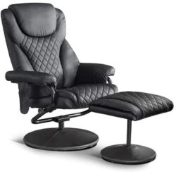 Mcombo Recliner With Ottoman, Massage 360 Swivel Leisure Chair Faux Leather 4901 – Cream White