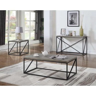 Celebrate contemporary design with the straight lines and angles from this modern coffee table. In a charming Sonoma grey finish, this table is complete with geometric shapes in the base. Marry rustic charm with modern industrialism in the combination of sleek metal and warm wood. The open frame is complete with deep hues that add structure and an airy feel to spaces. Complement a variety of motifs with the neutral tones from the legs and top.