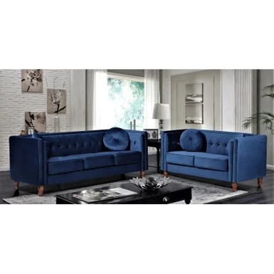 Elevate your living room decor with the luxurious Roberta Velvet 2-Piece Set, featuring a sofa and loveseat. Crafted with a sturdy wooden frame, this classic chesterfield design boasts clean lines, tight square arms, and tapered wooden feet. Its crushed velvet upholstery exudes glamour, while high-density foam and spring support ensure maximum comfort. Complete with piped seat cushions, button-tufted backrest, matching bolster pillows, and coordinating throw pillows, this set is the epitome of timeless appeal.