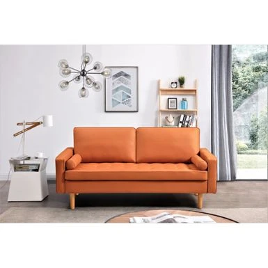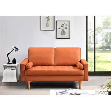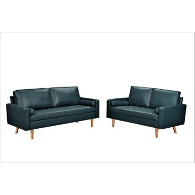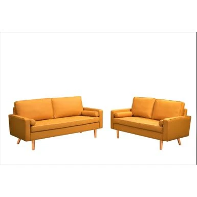 Upgrade your sitting room with this contemporary two-piece seating arrangement, featuring a sofa and loveseat upholstered in inviting faux leather. Tufted detailing and piped seams add subtle yet stylish accents to the clean-lined construction, while tapered feet provide stable support. This set includes two toss pillows designed to complement the overall aesthetic. Designed by Meirxifeng furniture design.