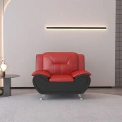 William Street 47.3″ Faux Leather Upholstered Club Chair – Red/Black