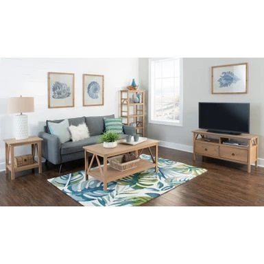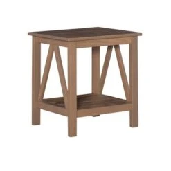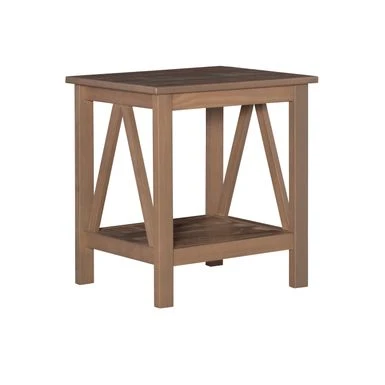 This has a simple yet eye-catching design that is matched with incredible durability. The End Table features a simple body that makes it perfect for any space. A gracious tabletop and spacious bottom shelf provide ample storage and display space. A neutral driftwood finish allows this piece to easily complement your homes decor.