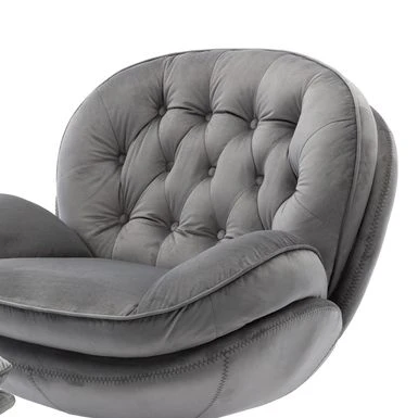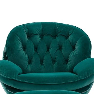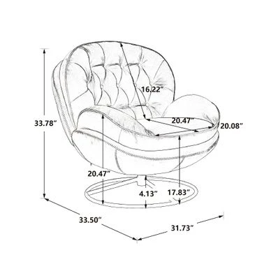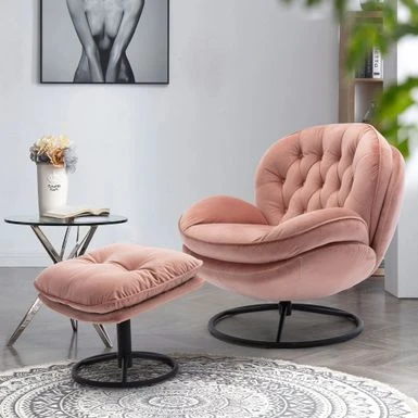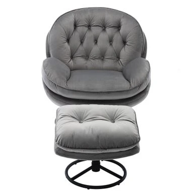 Upgrade your home decor with this stunning Velvet Tufted Lounge Chair and Ottoman. Meticulously crafted with attention to detail and design, this eye-catching piece boasts a unique display that provides an unmatched visual appeal. The lounge chair features a sturdy all-metal frame and a round swivel base for 360° rotation, while the shell-shaped seat with foam and polypropylene cotton blend filling is wrapped in soft velvet fabric for added comfort. The tufted backrest gives it an elegant silhouette, making it an excellent statement piece that showcases your personality. The accompanying ottoman, made of manufactured wood and metal frame, adds extra comfort and versatility to this lounge chair group. Perfect for modern living rooms, bedrooms, or any lounge space, it’s the ideal spot for reading books, watching movies or taking a nap.