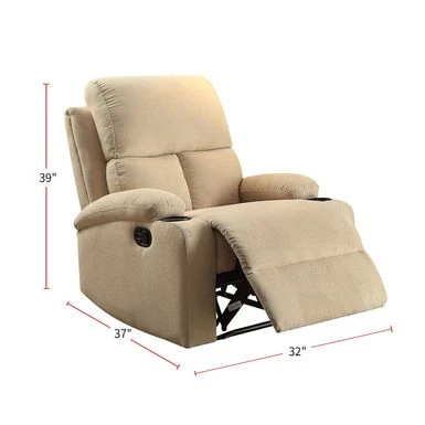 The recliner offers comfort, style, and value for any home. Reflects sleek styling, cozy seating and smooth upholstery provides relaxation from seat to toe with an easy to reach external handle for operating the reclining mechanism. The recliner offers comfort, style, and value for any home. Reflects sleek styling, cozy seating and smooth upholstery provides relaxation from seat to toe with an easy to reach external handle for operating the reclining mechanism. Update your living room environment with this comfortable, recliner chair it’s great for any space and makes it perfect to relax, take a nap or read a book.