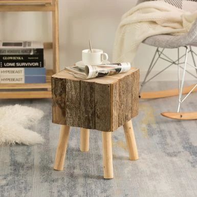 Bring country-style decoration into your living room furnishing collection. This coffee table stool is crafted from natural wood to provide the rustic statement you want to make. Raw cut and unfinished wood add a stylistic character. Multi-use, accent table may also be used as a stool, small coffee table base, outdoor or indoor plant stand, or nightstand. It’s that small and practical decor furniture that makes all the difference.