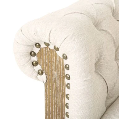 CHESTERFIELD INSPIRATION: Designed with the traditional Chesterfield style in mind, this set hits all the key elements, with smooth upholstery, a subtle hourglass shape, deep button tufting, nailhead accents, scrolled tuxedo arms, and turned legs.