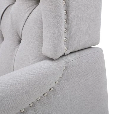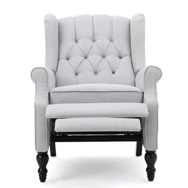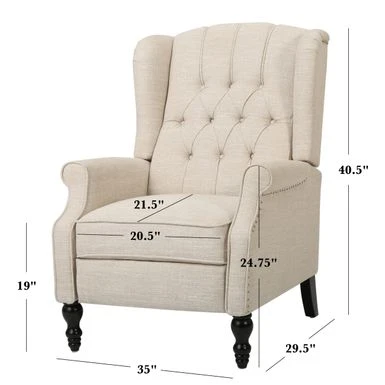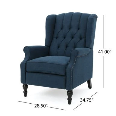 Relax in style and comfort with the Walter Tufted Fabric Recliners, a set of two chairs that exude both elegance and sophistication. These recliners are designed with a push-back recline mechanism and an adjustable footrest, making it easy to unwind after a long day. The contemporary design features smooth upholstery and tonal piping with a minimalistic yet refined structure that emphasizes both comfort and functionality. The button-tufted stitching adds an extra touch of sophistication to the backrest, while nailhead accents along the edges and rolled recessed arms complete the refined contemporary look. Choose from a variety of upholstery colors to perfectly match your decor style.