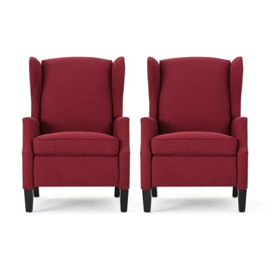 Elevate your living room look and comfort with this set of two classy recliners. These armchairs feature a traditional wingback design with a nailhead trim, and they’re available in a variety of colors. The pushback tilt mechanism lets you easily recline and put your feet up on the footrest.