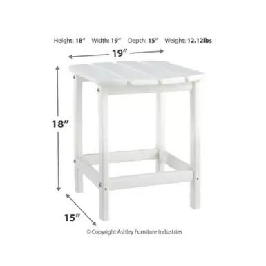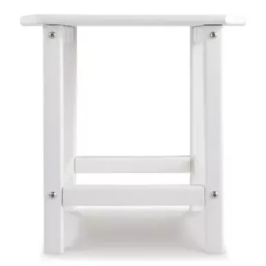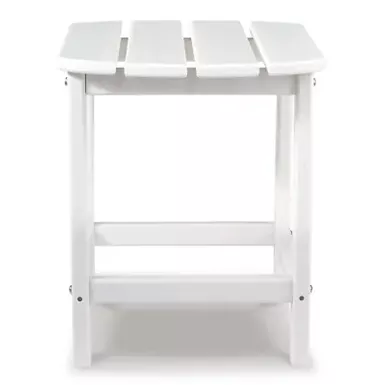 Add cottage-quaint charm to your outdoor oasis with the Sundown Treasure end table in white. Made of a hearty hard plastic material with a touch of texture, it’s sure to weather the seasons beautifully. Designed to shed rainwater, the table’s slatted top with gently rounded corners provides exceptional form and function.