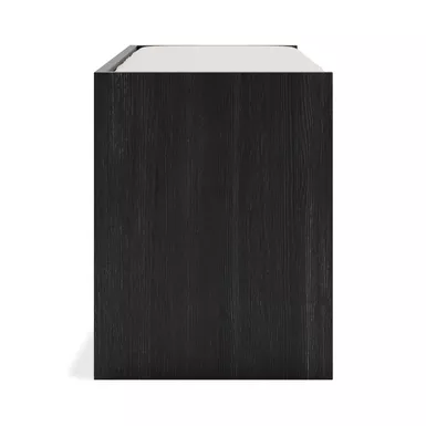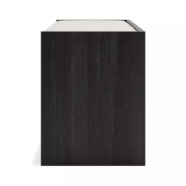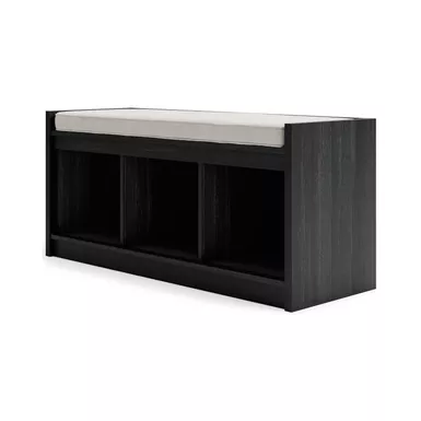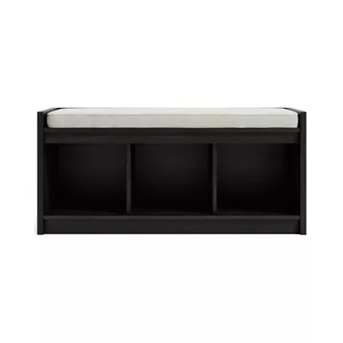 The clean profile of this short storage bench makes an entrance anywhere and everywhere you place it. Replicated blackened wood finish with a grayed textural grain adds a fresh flair. Wrapped in linen-look fabric, the reversible seat provides foam-cushioned comfort. Three open storage compartments add function to form in this must-have piece for small spaces.